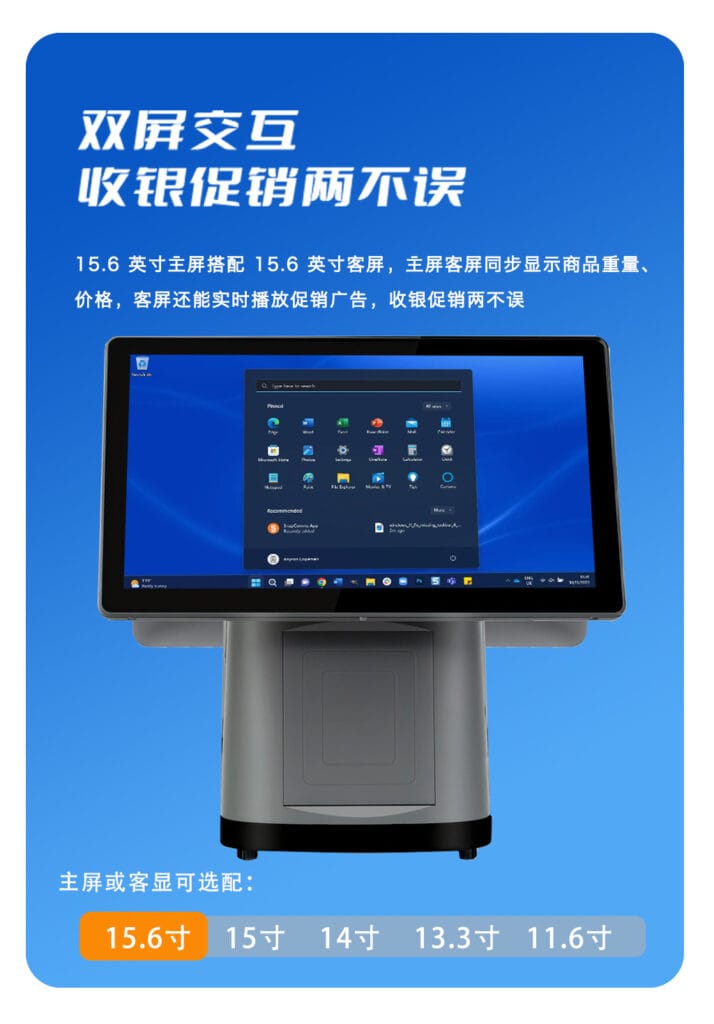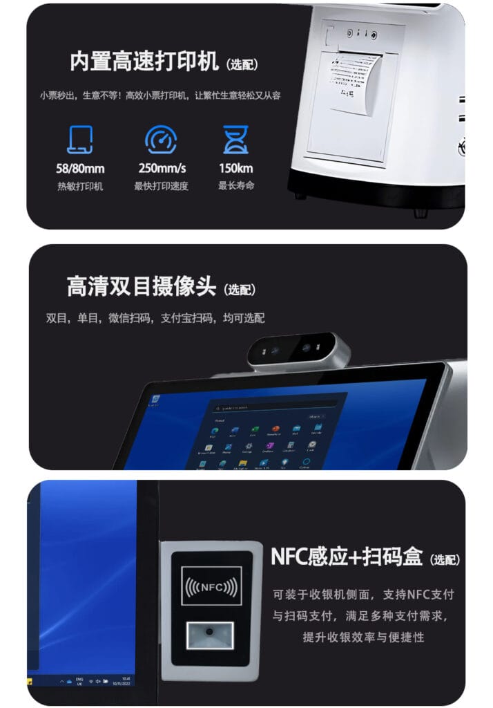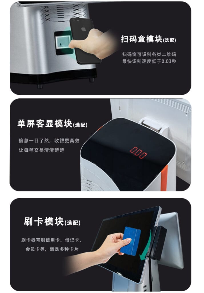 This POS series is flexible, ideal for retail, restaurant, supermarket, and other checkout scenarios.